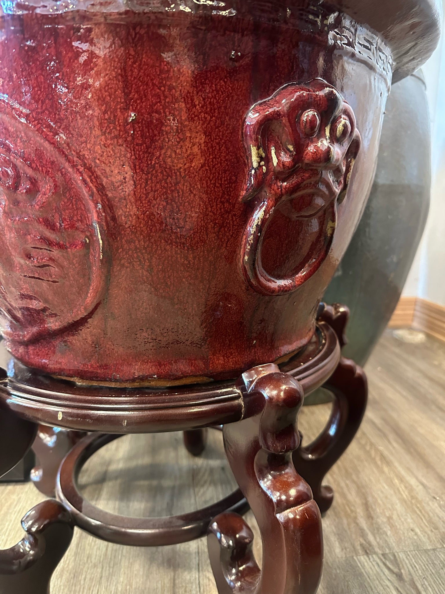 Red Ceramic Planter with stand